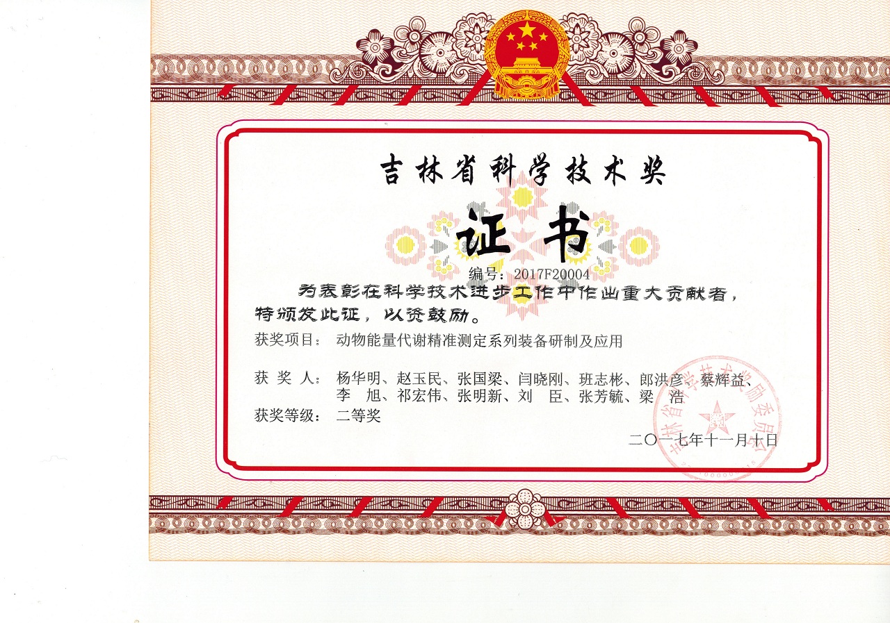 吉林省科学技术奖二等奖:动物能量代谢精准测定系列装备研制及应用